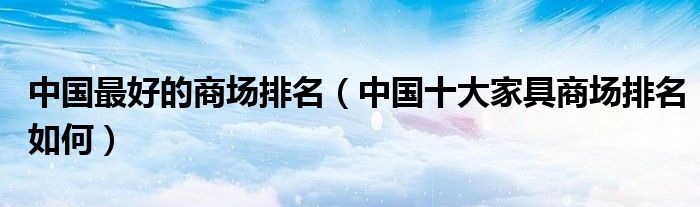 导读 大家好,精选小编来为大家解答以上的问题。中国最好的商场排名,中国十大家具商场排名如何很多人还不知道,现在让我们一起来看看吧!1、中