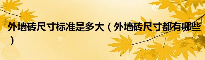 导读 大家好,精选小编来为大家解答以上的问题。外墙砖尺寸标准是多大,外墙砖尺寸都有哪些很多人还不知道,现在让我们一起来看看吧!1、外砖尺