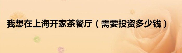 大家好,小编慧慧来为大家解答以上的问题。我想在上海开家茶餐厅,需要投资多少钱很多人还不知道,现在让我们一起来看看吧!