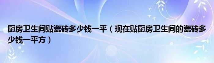 导读 大家好,精选小编来为大家解答以上的问题。厨房卫生间贴瓷砖多少钱一平,现在贴厨房卫生间的瓷砖多少钱一平方很多人还不知道,现在让我们一