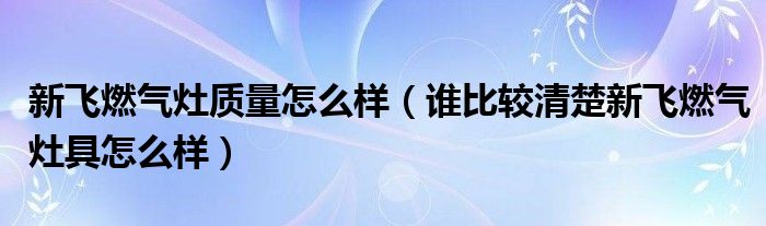 新飞燃气灶质量怎么样(谁比较清楚新飞燃气灶具怎么样)
