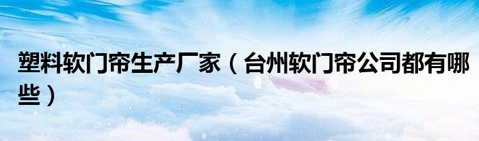 导读 大家好,精选小编来为大家解答以上的问题。塑料软门帘生产厂家,台州软门帘公司都有哪些很多人还不知道,现在让我们一起来看看吧!1、A:台