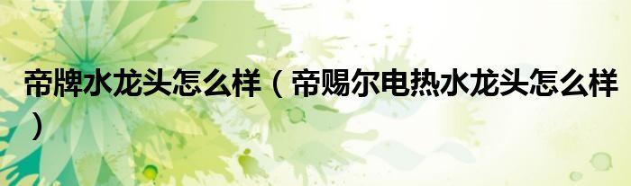 导读 大家好,精选小编来为大家解答以上的问题。帝牌水龙头怎么样,帝赐尔电热水龙头怎么样很多人还不知道,现在让我们一起来看看吧!1、还是不