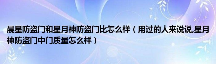 晨星防盗门和星月神防盗门比怎么样(用过的人来说说,星月神防盗门中门质量怎么样)