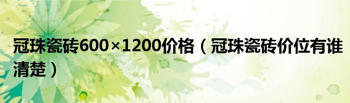 导读 大家好,精选小编来为大家解答以上的问题。冠珠瓷砖600×1200价格,冠珠瓷砖价位有谁清楚很多人还不知道,现在让我们一起来看看吧!1、冠珠
