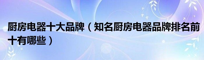 导读 大家好,精选小编来为大家解答以上的问题。厨房电器十大品牌,知名厨房电器品牌排名前十有哪些很多人还不知道,现在让我们一起来看看吧!1