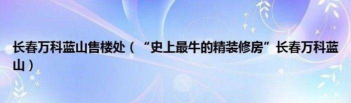长春万科蓝山售楼处(“史上最牛的精装修房”长春万科蓝山)