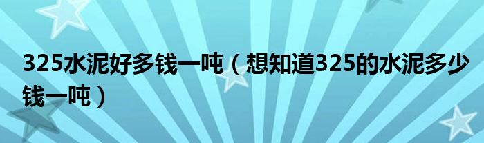 325水泥好多钱一吨(想知道325的水泥多少钱一吨)