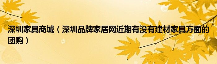 深圳家具商城(深圳品牌家居网近期有没有建材家具方面的团购)