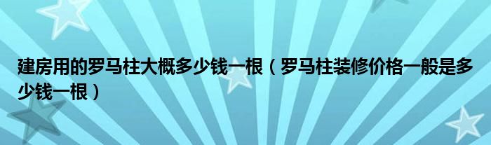 建房用的罗马柱大概多少钱一根(罗马柱装修价格一般是多少钱一根)