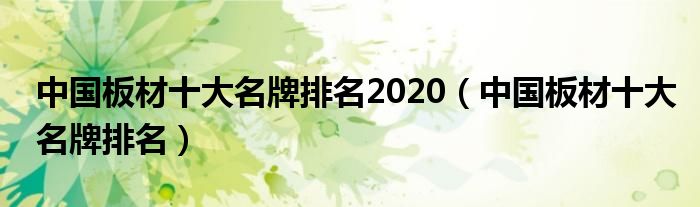 中国板材十大名牌排名2020(中国板材十大名牌排名)