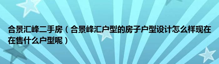 导读 大家好,小编慧慧来为大家解答以上的问题。合景汇峰二手房,合景峰汇户型的房子户型设计怎么样现在在售什么户型呢很多人还不知道,现在让我