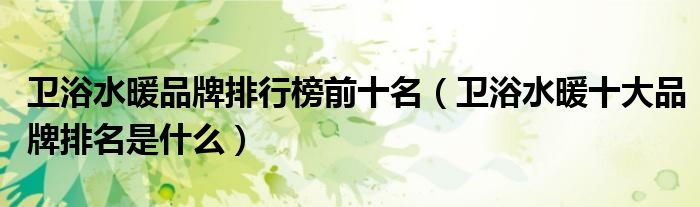 卫浴水暖品牌排行榜前十名(卫浴水暖十大品牌排名是什么)