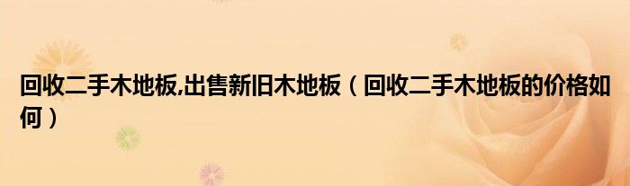 导读 大家好,精选小编来为大家解答以上的问题。回收二手木地板,出售新旧木地板,回收二手木地板的价格如何很多人还不知道,现在让我们一起来看
