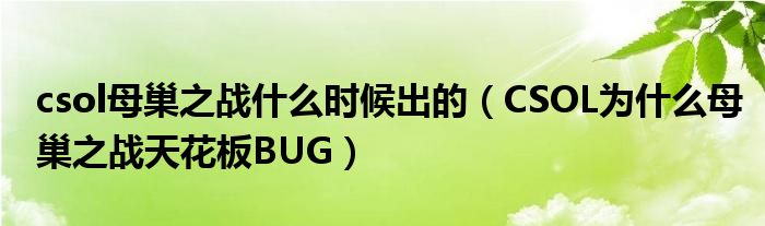 导读 大家好,精选小编来为大家解答以上的问题。csol母巢之战什么时候出的,CSOL为什么母巢之战天花板BUG很多人还不知道,现在让我们一起来看看