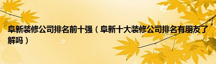 导读 大家好,精选小编来为大家解答以上的问题。阜新装修公司排名前十强,阜新十大装修公司排名有朋友了解吗很多人还不知道,现在让我们一起来看