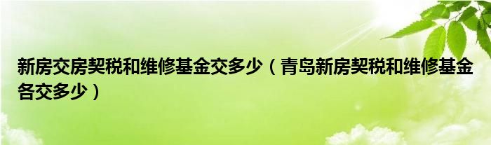 导读 大家好,小编慧慧来为大家解答以上的问题。新房交房契税和维修基金交多少,青岛新房契税和维修基金各交多少很多人还不知道,现在让我们一起