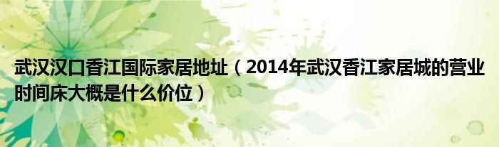 导读 大家好,小编慧慧来为大家解答以上的问题。武汉汉口香江国际家居地址,2014年武汉香江家居城的营业时间床大概是什么价位很多人还不知道,现
