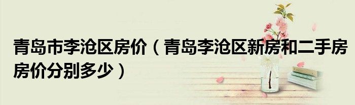 青岛市李沧区房价(青岛李沧区新房和二手房房价分别多少)