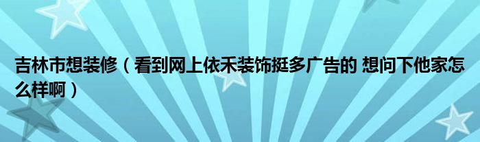 吉林市想装修(看到网上依禾装饰挺多广告的 想问下他家怎么样啊)