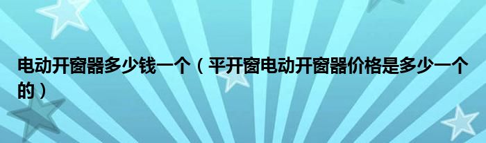导读 大家好,精选小编来为大家解答以上的问题。电动开窗器多少钱一个,平开窗电动开窗器价格是多少一个的很多人还不知道,现在让我们一起来看看