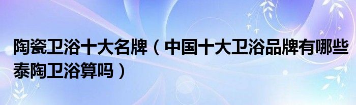 导读 大家好,精选小编来为大家解答以上的问题。陶瓷卫浴十大名牌,中国十大卫浴品牌有哪些泰陶卫浴算吗很多人还不知道,现在让我们一起来看看吧
