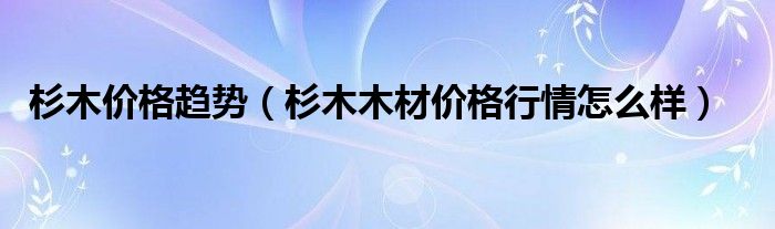 大家好,精选小编来为大家解答以上的问题。杉木价格趋势,杉木木材价格行情怎么样很多人还不知道,现在让我们一起来看看吧!