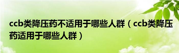ccb类降压药不适用于哪些人群(ccb类降压药适用于哪些人群)