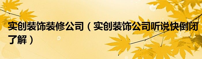 实创装饰装修公司(实创装饰公司听说快倒闭了解)