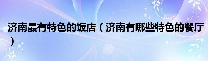 济南最有特色的饭店(济南有哪些特色的餐厅)
