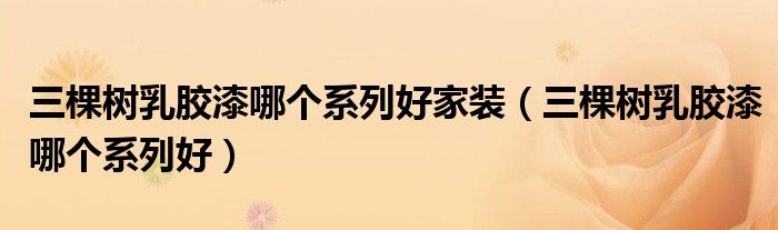 三棵树乳胶漆哪个系列好家装(三棵树乳胶漆哪个系列好)