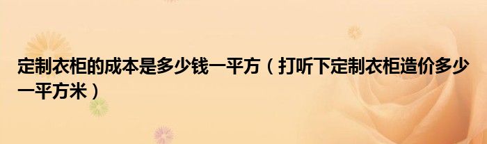 定制衣柜的成本是多少钱一平方(打听下定制衣柜造价多少一平方米)
