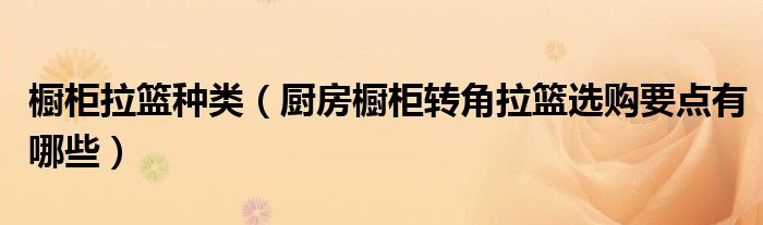 导读 大家好,精选小编来为大家解答以上的问题。橱柜拉篮种类,厨房橱柜转角拉篮选购要点有哪些很多人还不知道,现在让我们一起来看看吧!1、厨