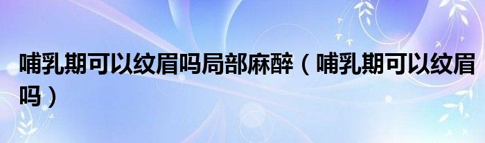 哺乳期可以纹眉吗局部麻醉(哺乳期可以纹眉吗)