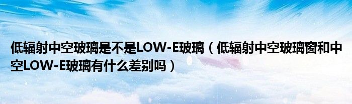 导读 大家好,精选小编来为大家解答以上的问题。低辐射中空玻璃是不是LOW-E玻璃,低辐射中空玻璃窗和中空LOW-E玻璃有什么差别吗很多人还不知道,