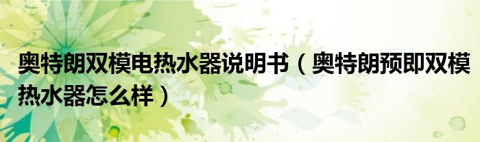 奥特朗双模电热水器说明书(奥特朗预即双模热水器怎么样)