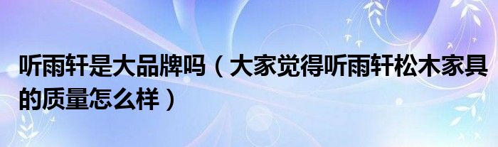 听雨轩是大品牌吗(大家觉得听雨轩松木家具的质量怎么样)