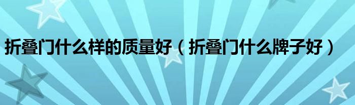 导读 大家好,精选小编来为大家解答以上的问题。折叠门什么样的质量好,折叠门什么牌子好很多人还不知道,现在让我们一起来看看吧!1、答:问题