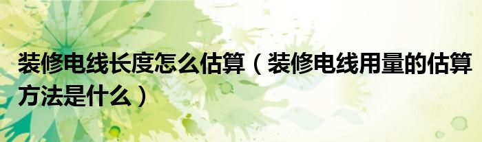 装修电线长度怎么估算(装修电线用量的估算方法是什么)