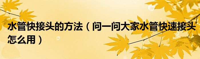 水管快接头的方法(问一问大家水管快速接头怎么用)