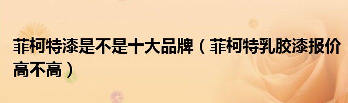 菲柯特漆是不是十大品牌(菲柯特乳胶漆报价高不高)