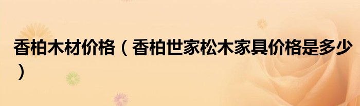 导读 大家好,精选小编来为大家解答以上的问题。香柏木材价格,香柏世家松木家具价格是多少很多人还不知道,现在让我们一起来看看吧!1、现在市