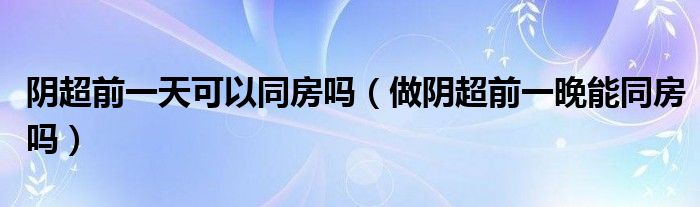 阴超前一天可以同房吗(做阴超前一晚能同房吗)