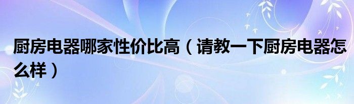 厨房电器哪家性价比高(请教一下厨房电器怎么样)