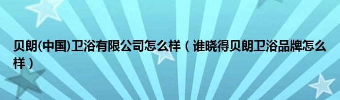 贝朗(中国)卫浴有限公司怎么样(谁晓得贝朗卫浴品牌怎么样)
