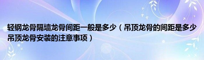 导读 大家好,精选小编来为大家解答以上的问题。轻钢龙骨隔墙龙骨间距一般是多少,吊顶龙骨的间距是多少吊顶龙骨安装的注意事项很多人还不知道,