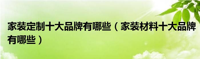 家装定制十大品牌有哪些(家装材料十大品牌有哪些)