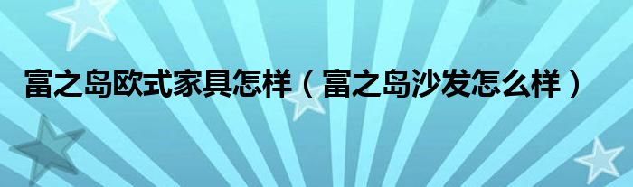 富之岛欧式家具怎样(富之岛沙发怎么样)