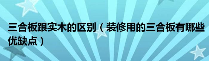 导读 大家好,精选小编来为大家解答以上的问题。三合板跟实木的区别,装修用的三合板有哪些优缺点很多人还不知道,现在让我们一起来看看吧!1、