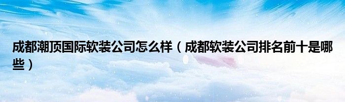 导读 大家好,精选小编来为大家解答以上的问题。成都潮顶国际软装公司怎么样,成都软装公司排名前十是哪些很多人还不知道,现在让我们一起来看看